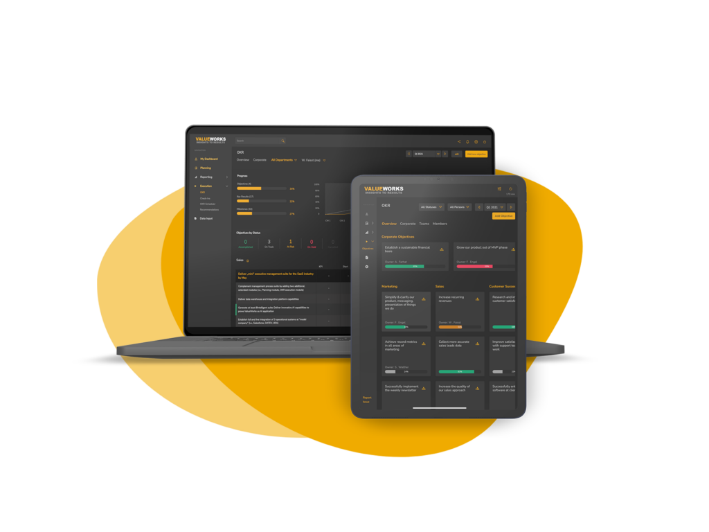 ValueWorks can be adapted to the individual structure and identity of your company - from visual elements to strategically relevant parameters such as currency and organisational structure.