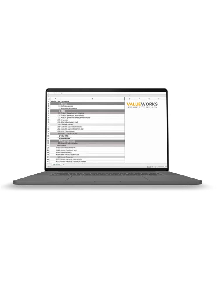Eine Beispiel SaaS G&V-Rechnung mit vorgegebener Kostenstellenstruktur, aufbereitet und einsatzbereit für Investoren